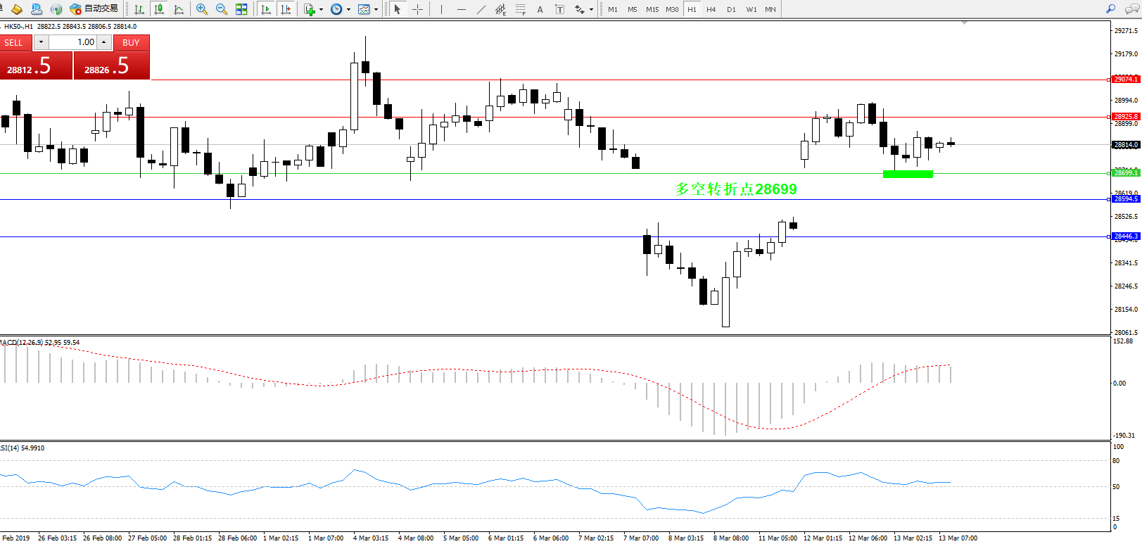 交易策略:28699上方看涨,目标28925、29074