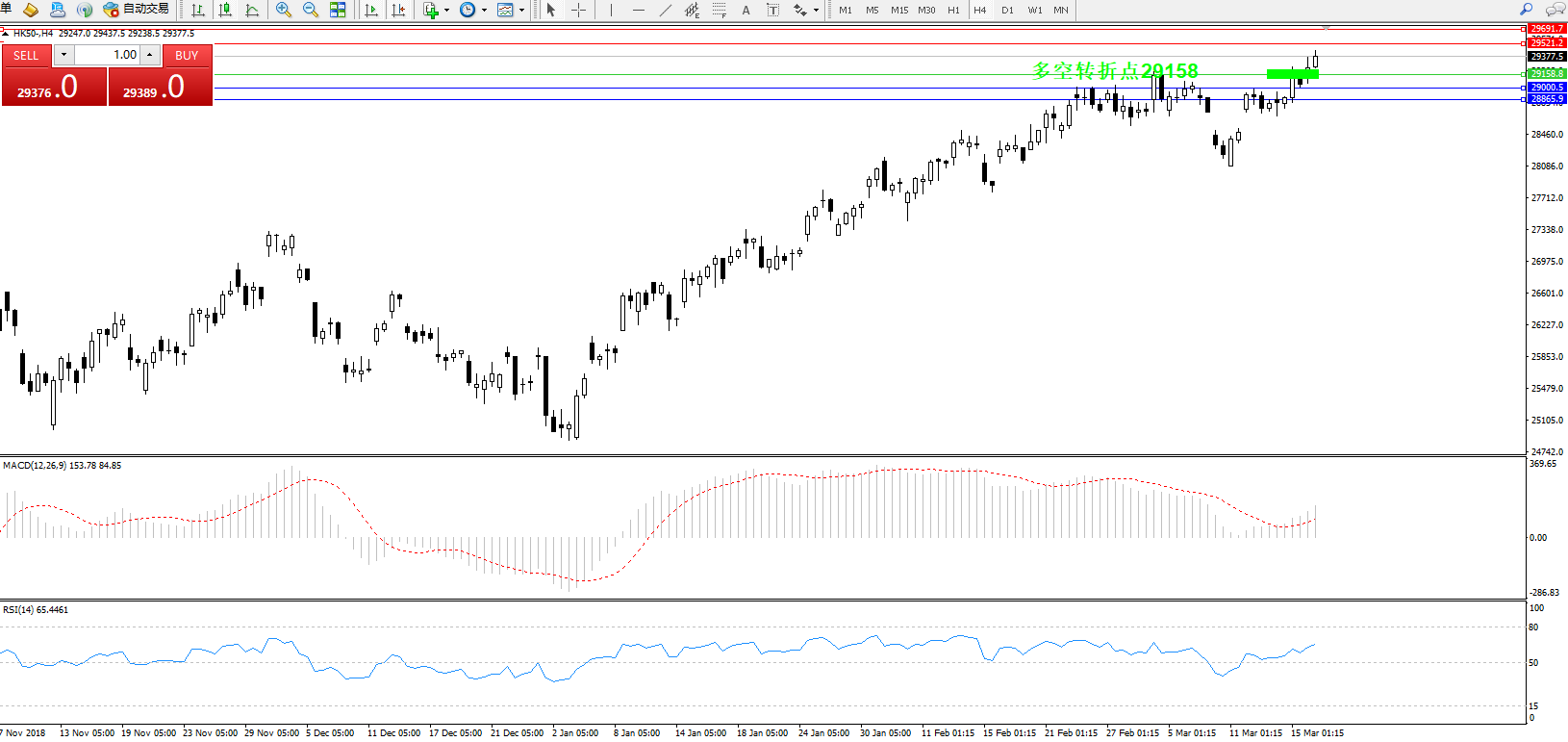 香港恒生指数收盘升1.4%,至29409.01点,创去年6月以来新高。因市场情绪受到中美贸易谈判和中国即将出台的经济刺激措施保证的头条新闻的鼓舞。科创板并试点注册制的实施,将进一步完善资本市场基础制度和丰富资本市场层次,增强资本市场对实体经济的包容性,更好地服务具有核心技术、行业领先、有良好发展前景和口碑的企业,通过改革进一步完善支持创新的资本形成机制,为中国经济高质量发展再立新功。