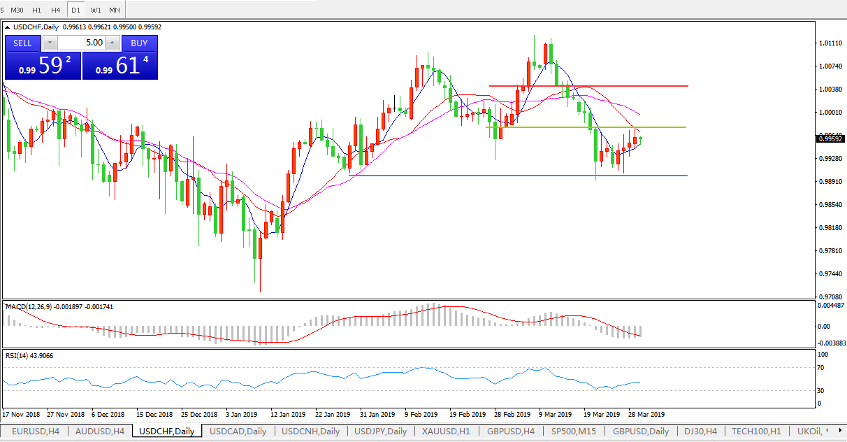 美元兑瑞郎USDCHF 日线图: