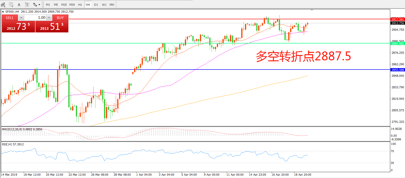 多空转折点:2887.50
