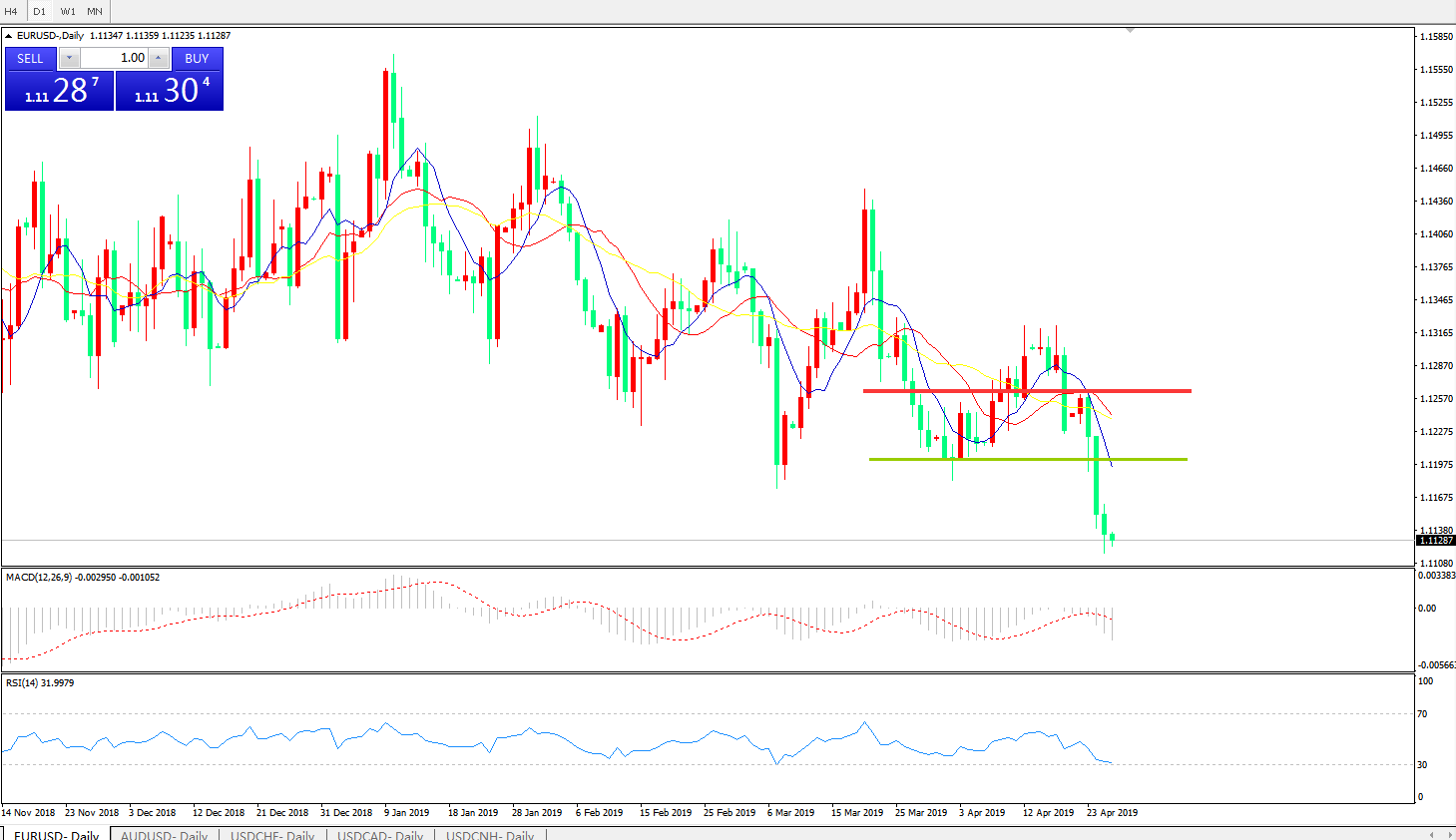 交易策略:在1.1200之下,看跌,目标价位为 1.1100,然后为1 .1030。