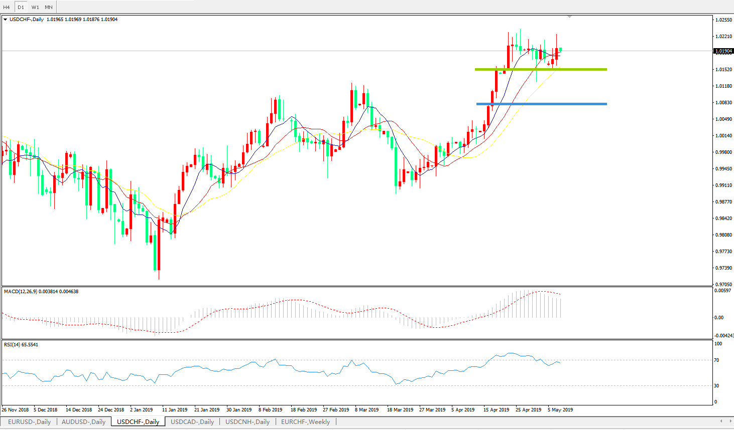 美元兑瑞郎USDCHF 日线图:
