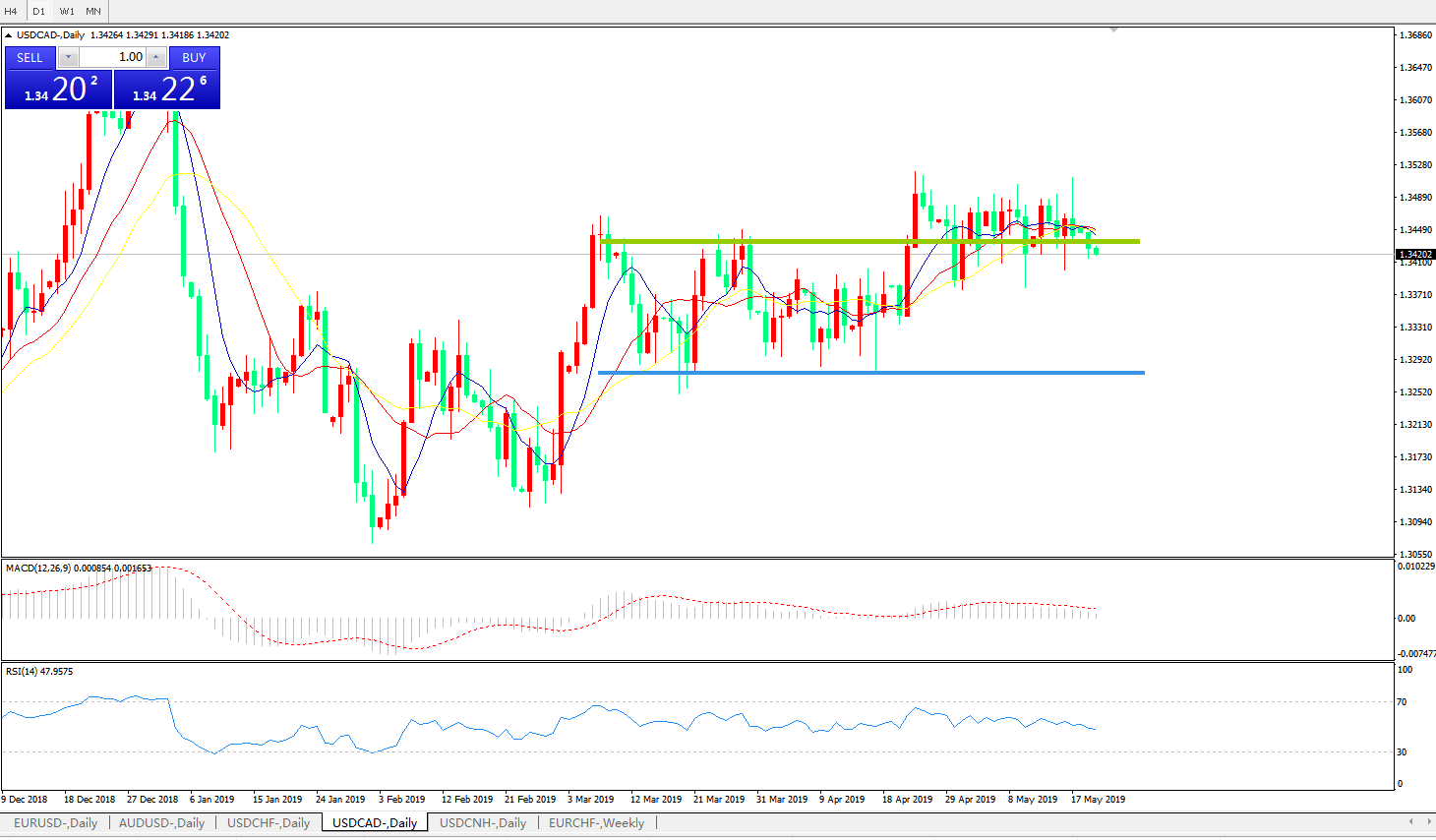 美元兑加元USDCAD 日线图: