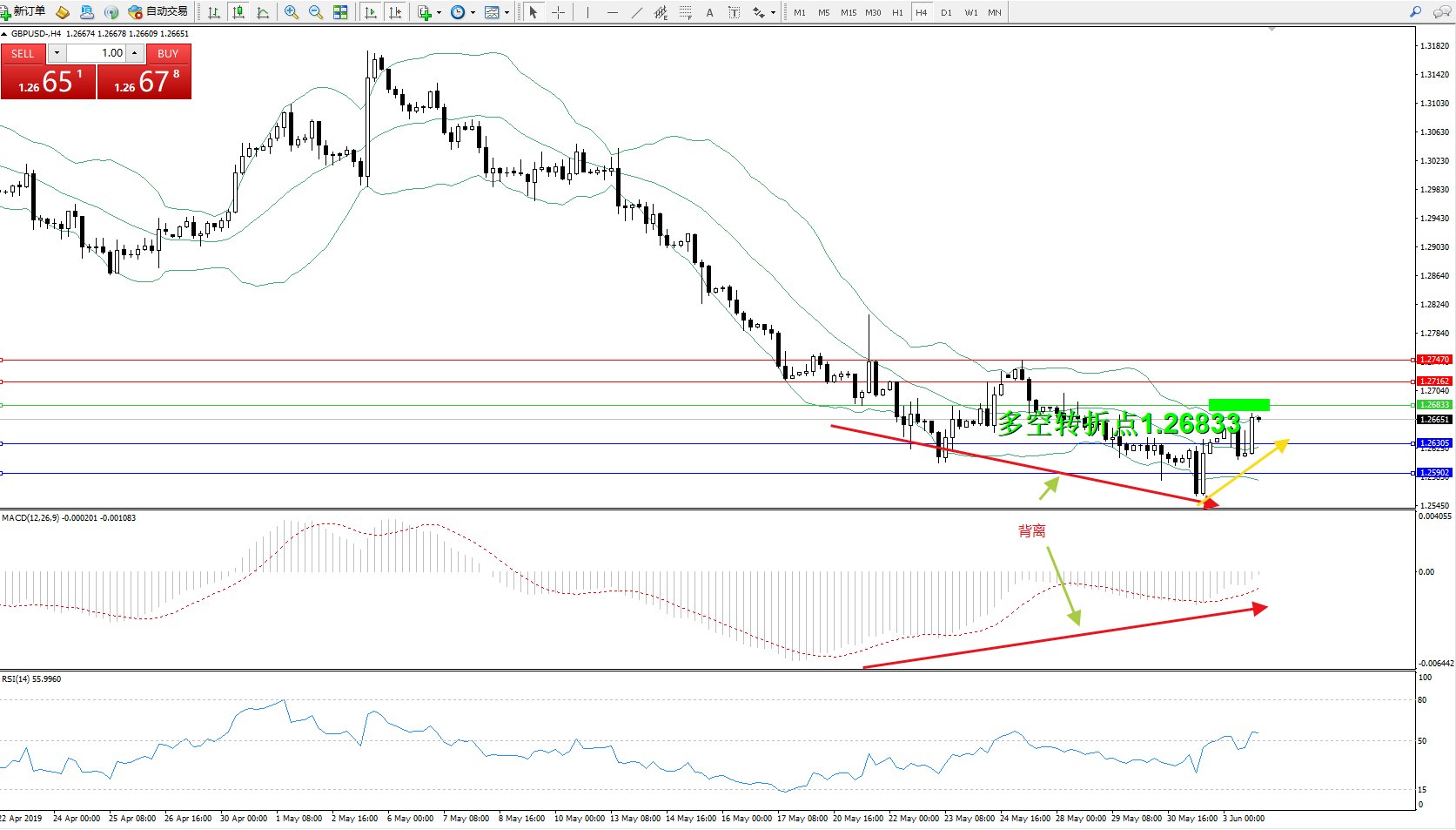 交易策略:1.26833下方看跌,目标1.263051.25902