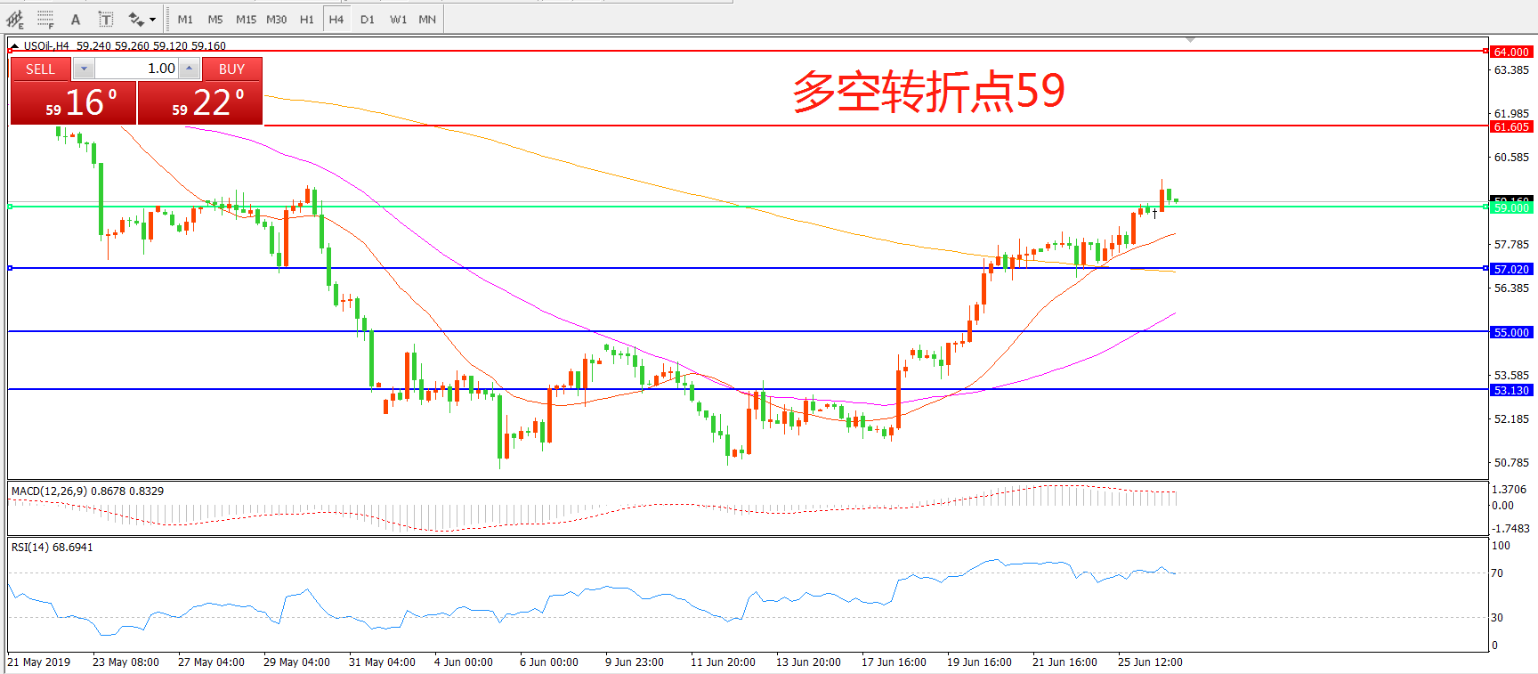 交易策略:在59.00之上看涨,目标61.00    64.00