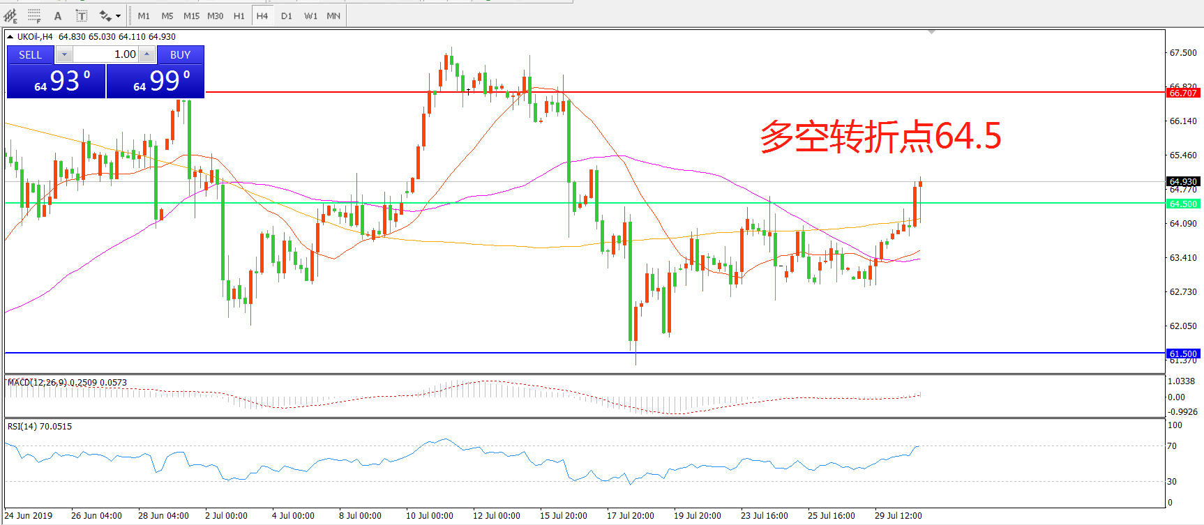 交易策略:在64.50之上看涨,目标66.70 69.00