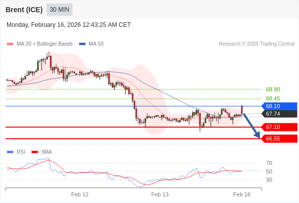 在 68.10 之下,看跌,目标价位为 67.10 ,然后为 66.55 。
