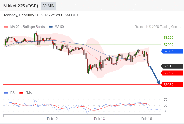 在 57600 之下,看跌,目标价位为 56590 ,然后为 56050 。