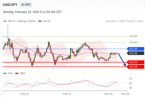 交易策略: 在 153.30 之下,看跌,目标价位为 152.55 ,然后为 152.30 。
