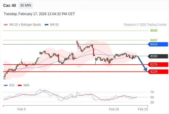 Cac 40 当日内: 短期关键阻力位在8410。