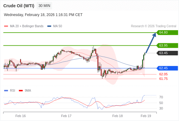 在 62.45 之上,看涨,目标价位为 63.95 ,然后为 64.80 。