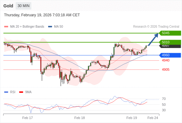 在 4960 之上,看涨,目标价位为 5010 ,然后为 5045 。