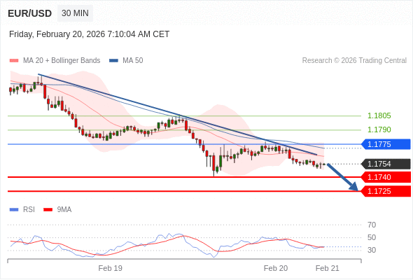 在 1.1775 之下,看跌,目标价位为 1.1740 ,然后为 1.1725 。