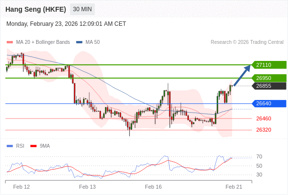 在 26640 之上,看涨,目标价位为 26950 ,然后为 27110 。