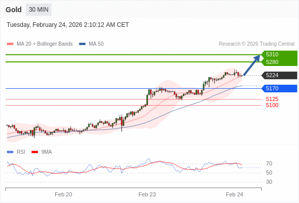 在 5170 之上,看涨,目标价位为 5280 ,然后为 5310 。