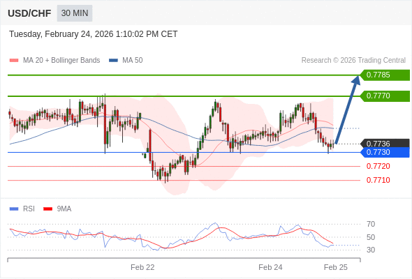 在 0.7730 之上,看涨,目标价位为 0.7770 ,然后为 0.7785 。