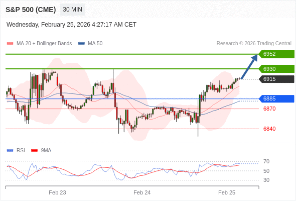 在 6885 之上,看涨,目标价位为 6930 ,然后为 6952 。
