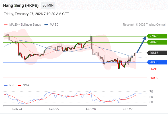在 26380 之上,看涨,目标价位为 26870 ,然后为 27020 。