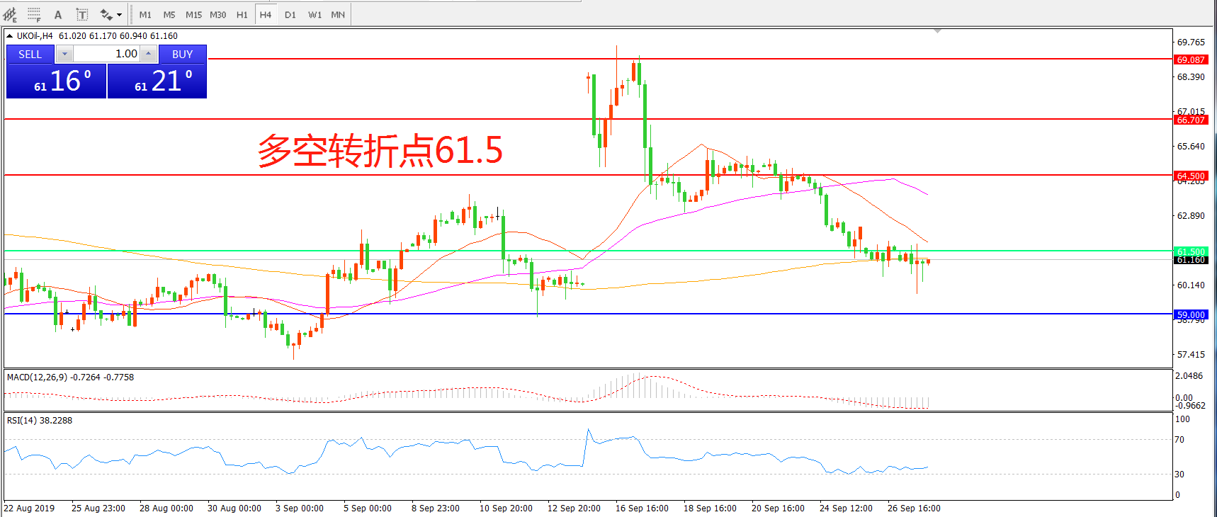 多空转折点:61.50
