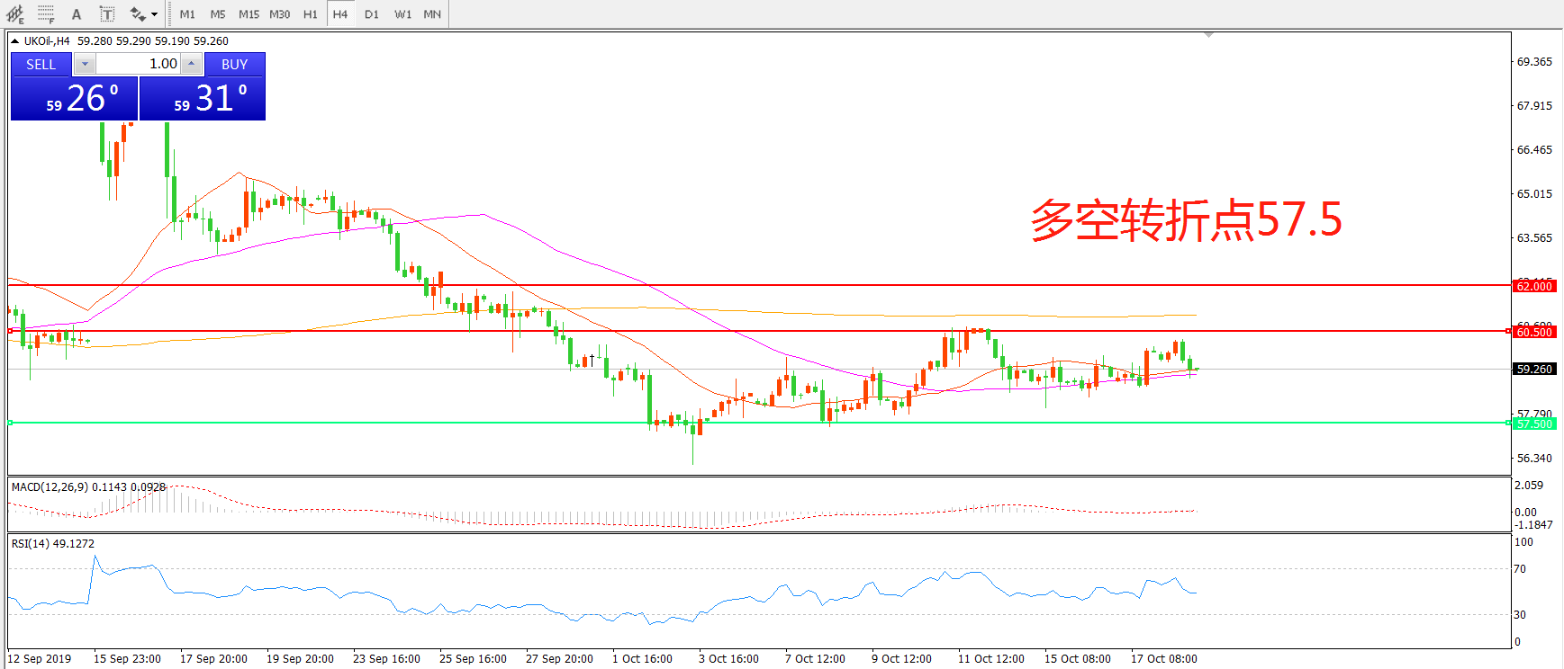 多空转折点:57.50