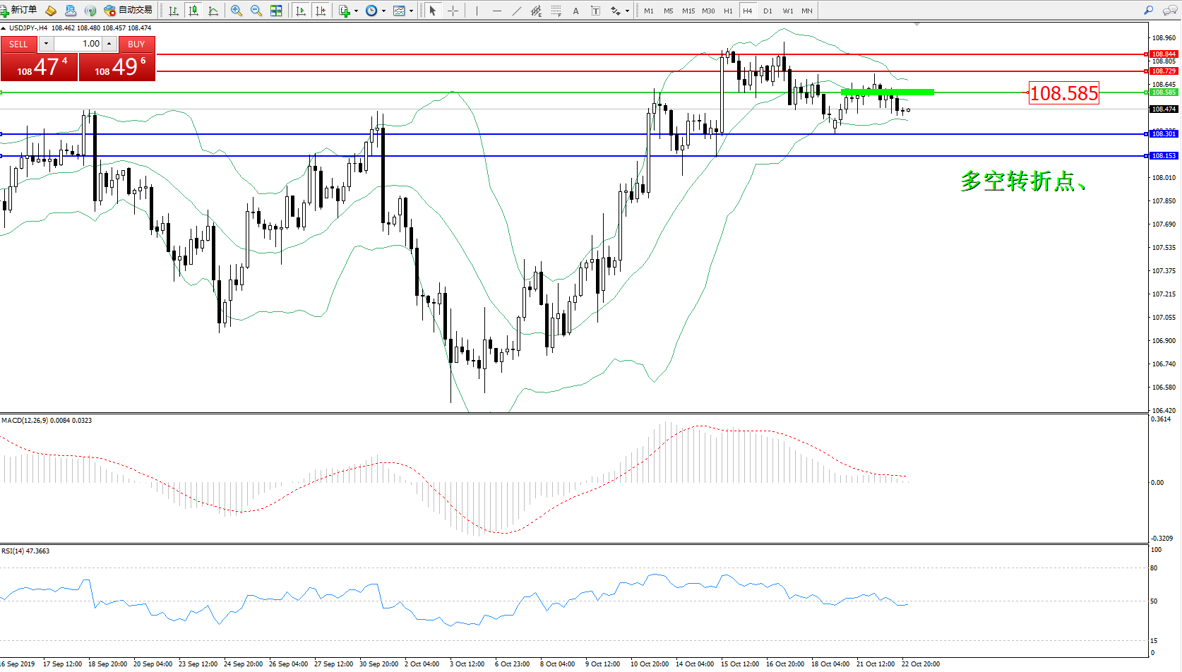 交易策略:108.585下方看跌,目标108.301108.153