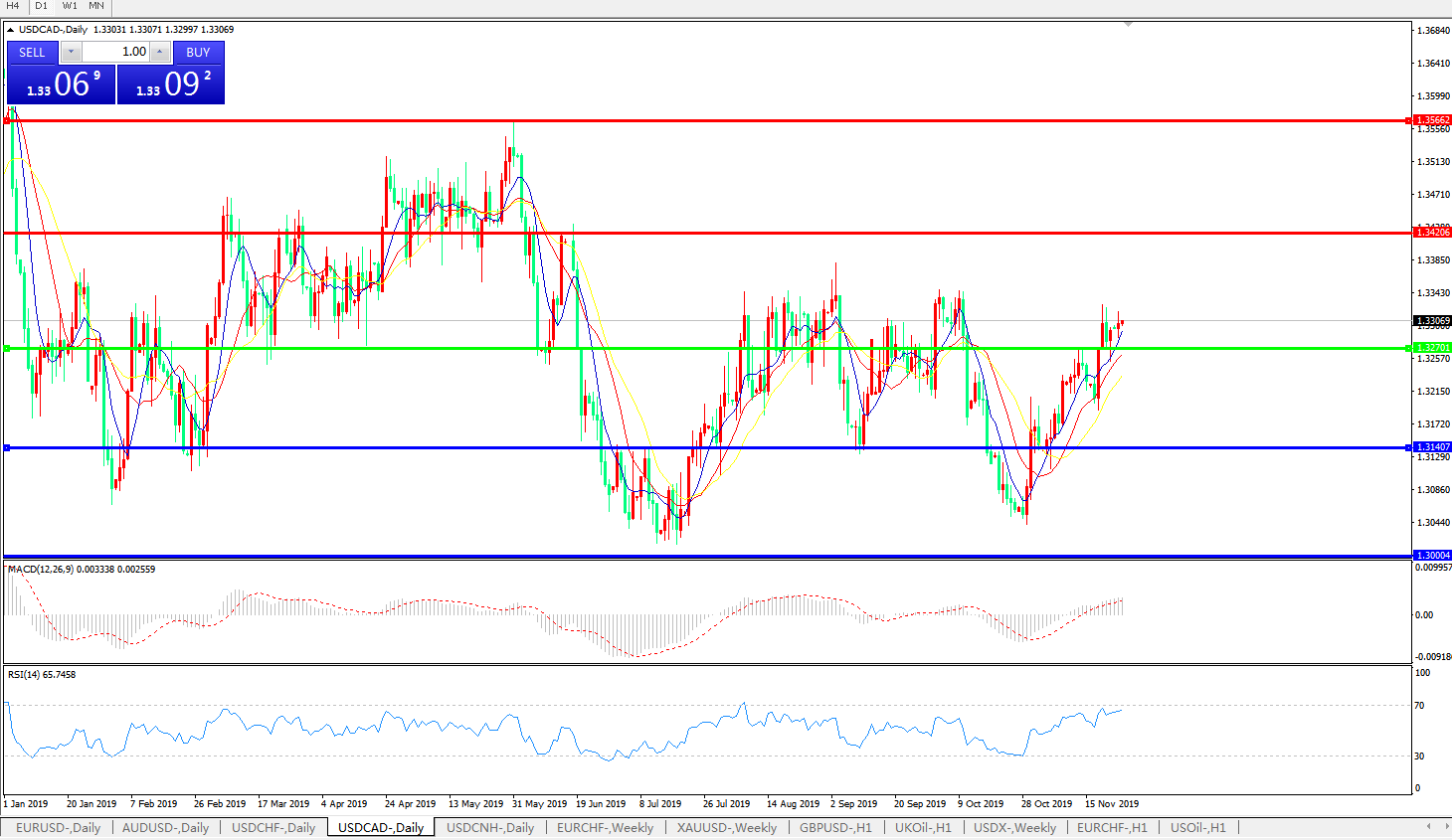 美元兑加元USDCAD 日线图: