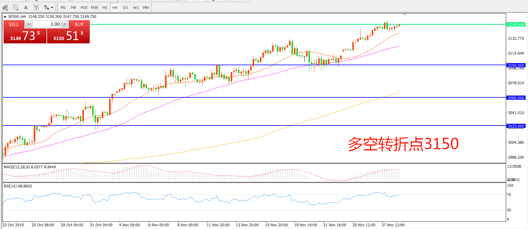 多空转折点:3150.00