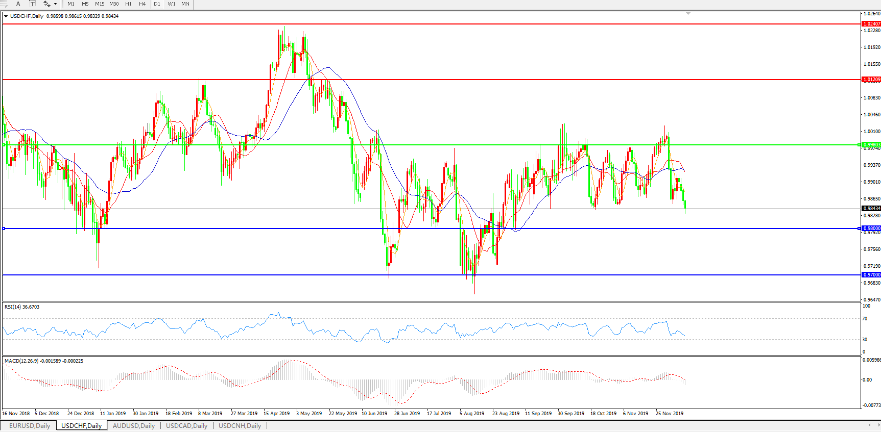 美元兑瑞郎USDCHF 日线图: