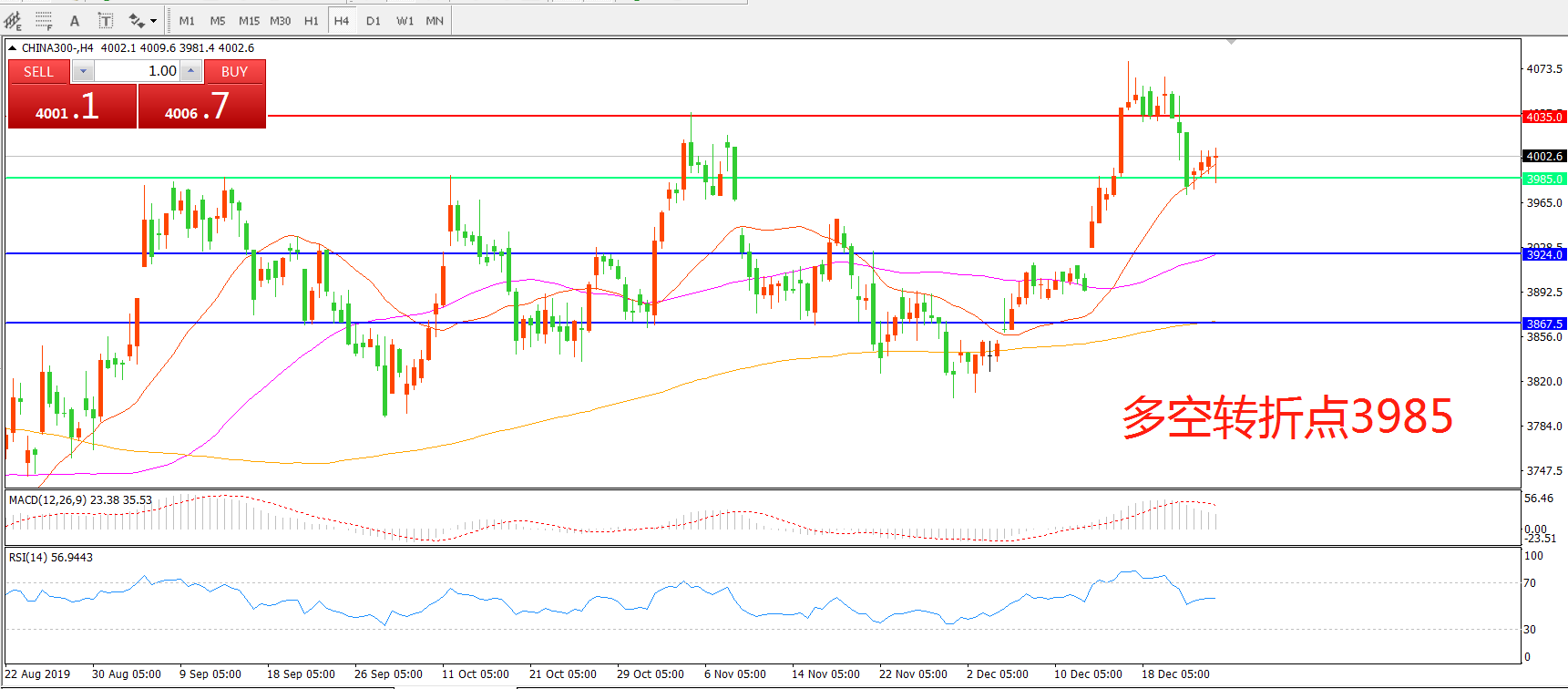 多空转折点:3985.00