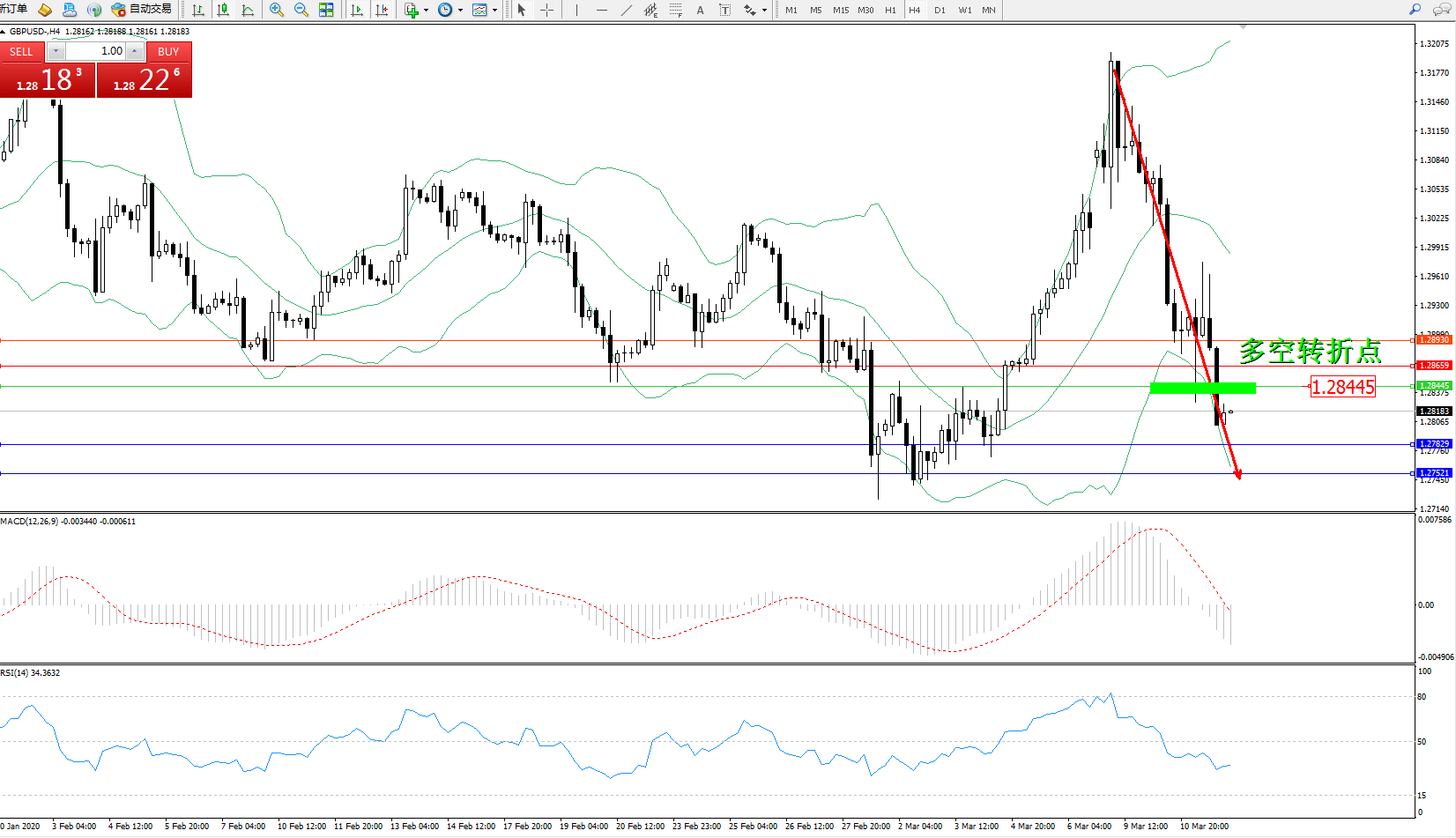 交易策略:1.28445下方看跌,目标1.278291.27521