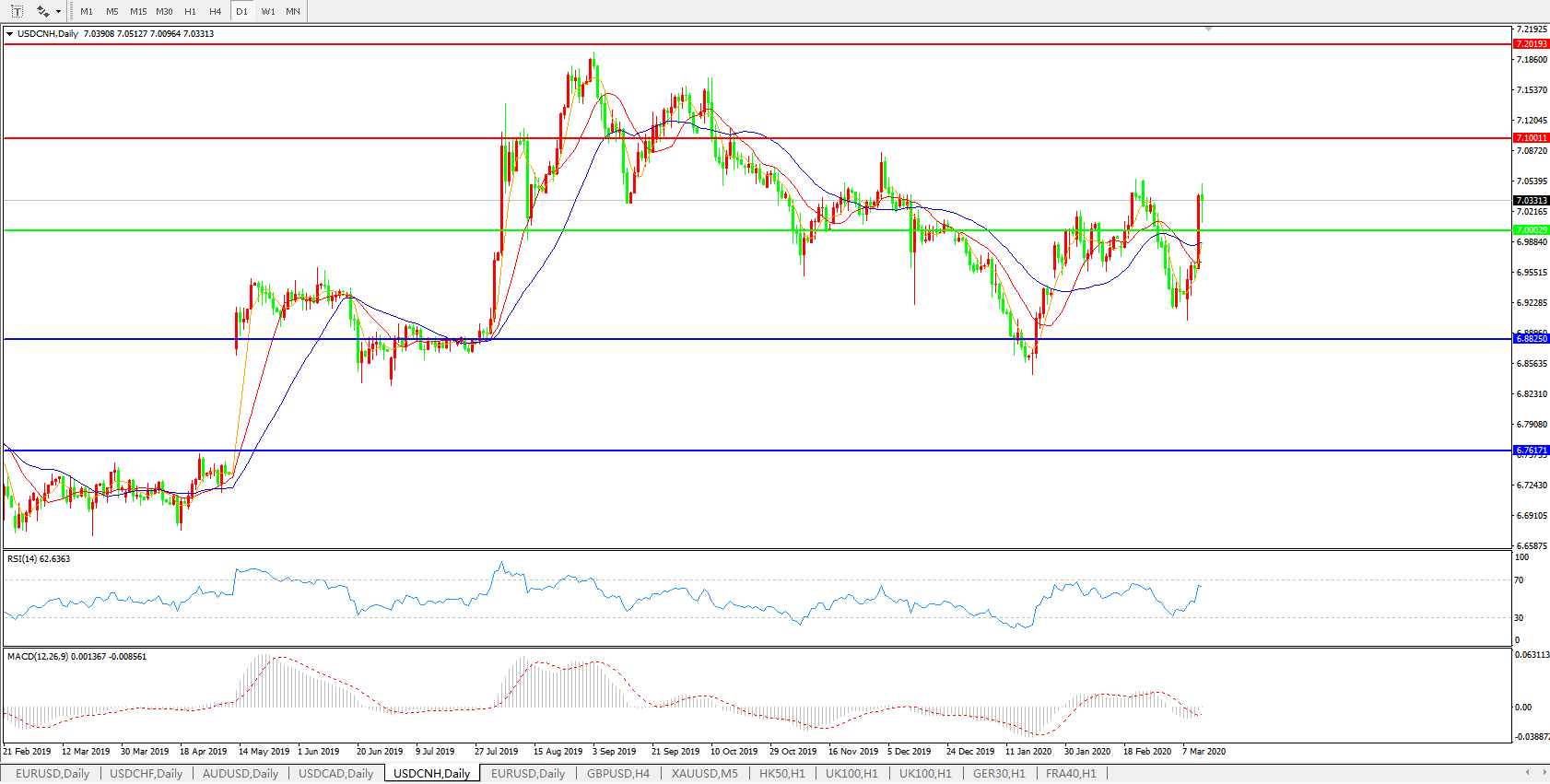 美元兑人民币USDCNH    日线图:
