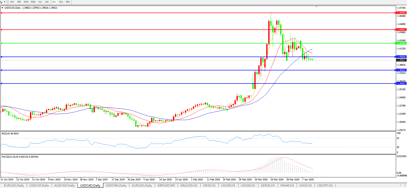 美元兑加元USDCAD 日线图: