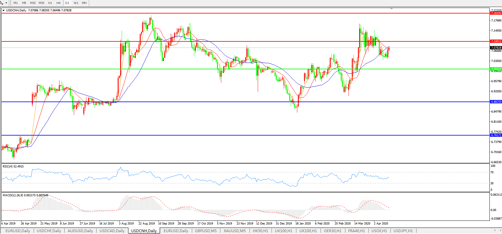 美元兑人民币USDCNH    日线图: