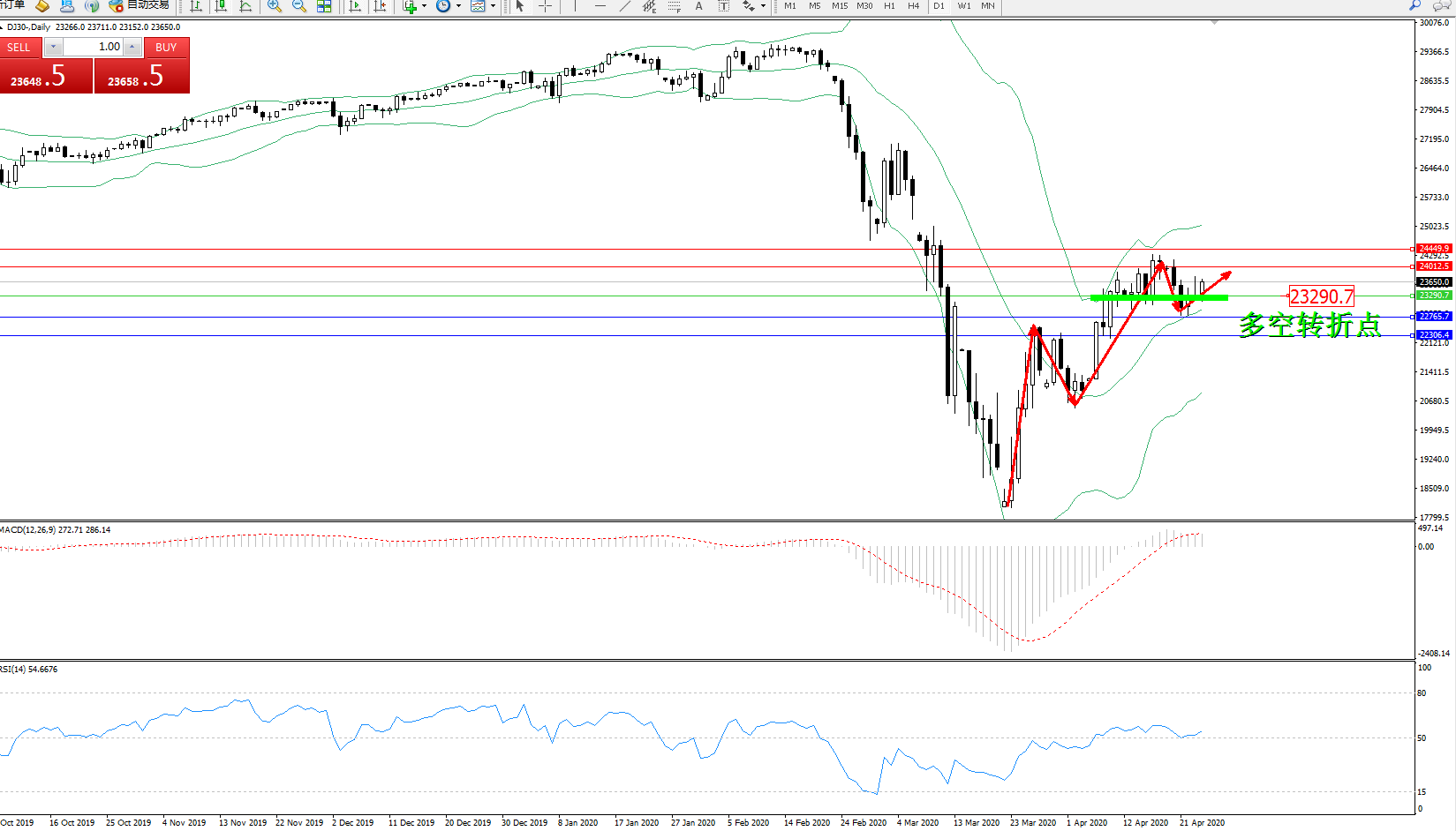 道琼斯指数424日(周五)收盘上涨260.00点,涨幅1.11%,报23775.27点。科技和消费类股推动美国股市走高,科技股中,苹果和微软涨幅居前,投资者权衡最新的企业财报以及美国为重新开放经济所做的努力。面对仍然令人震惊的经济数据,市场的稳定性和弹性可能是因为假设或希望收入和经济的收缩尽管巨幅但不会持久,市场有点像穿过谷底。美联储周二至周三将再度举行政策例会,由于此前美联储已经被政策利率下限调降至零,且承诺了无限度的量化宽松措施,投资者普遍认为其可用的政策工具已经尽数祭出,因而此次政策决议的引起的关注程度目前仍有限。