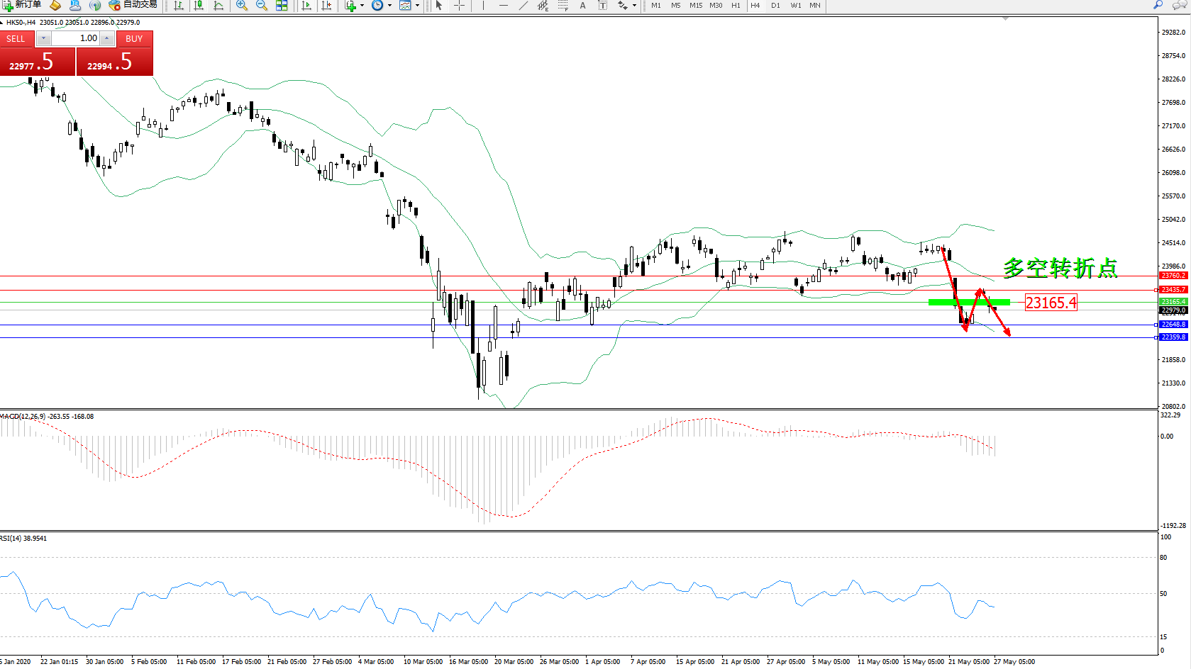 恒指HK50 ——4小时K线图显示: