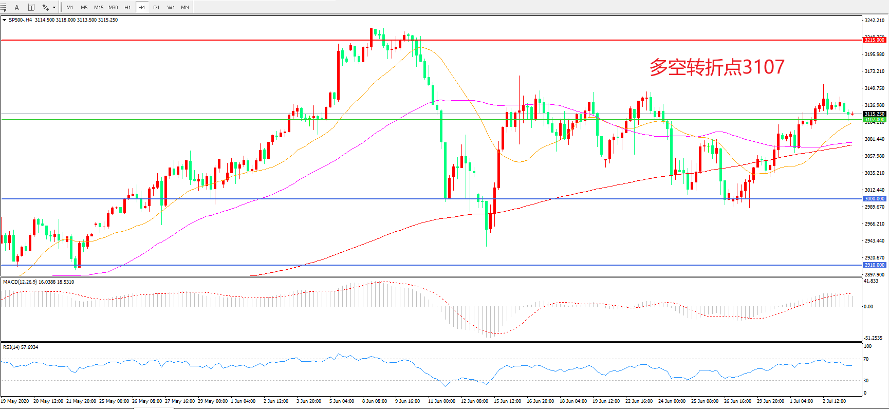 多空转折点:3107.00