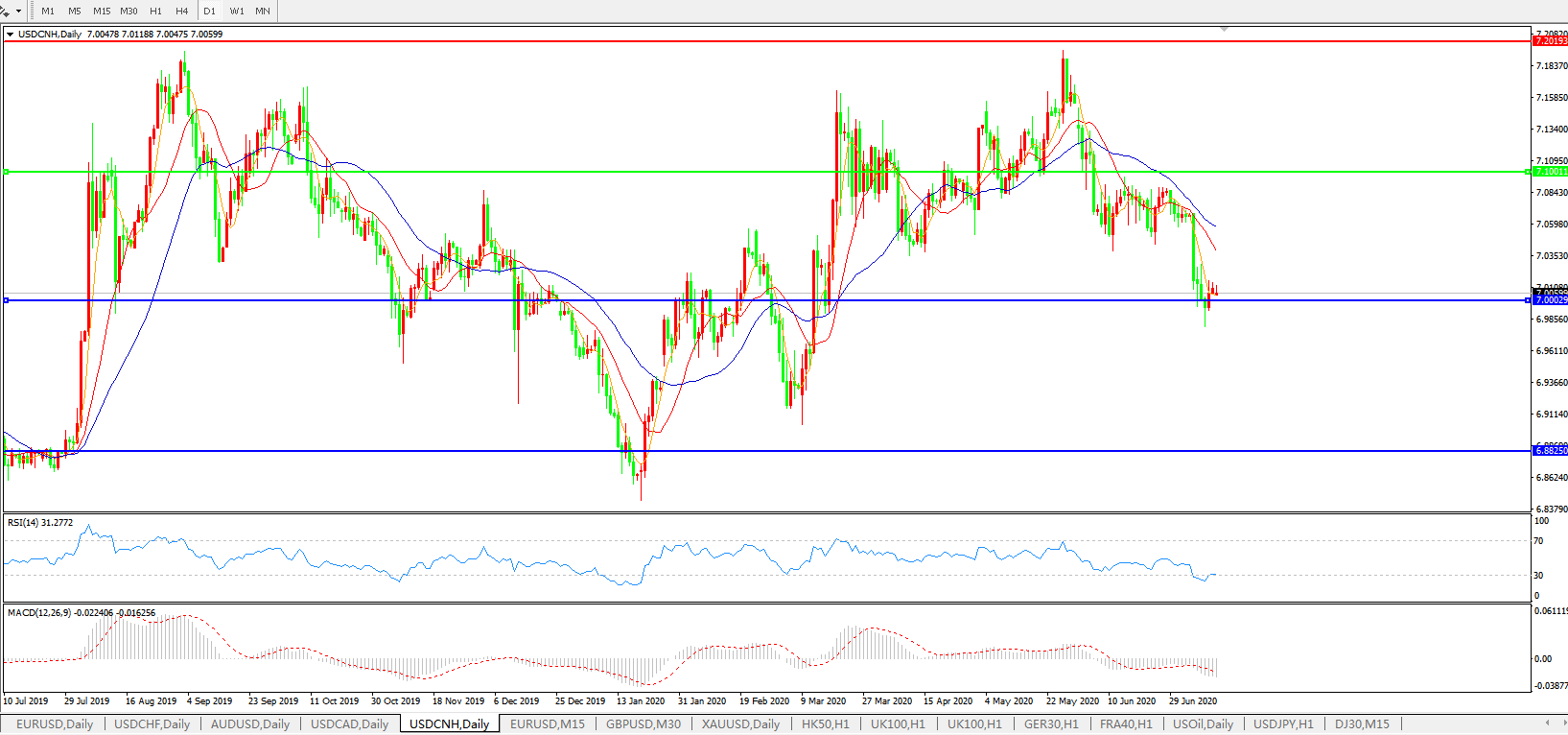 美元兑人民币USDCNH    日线图: