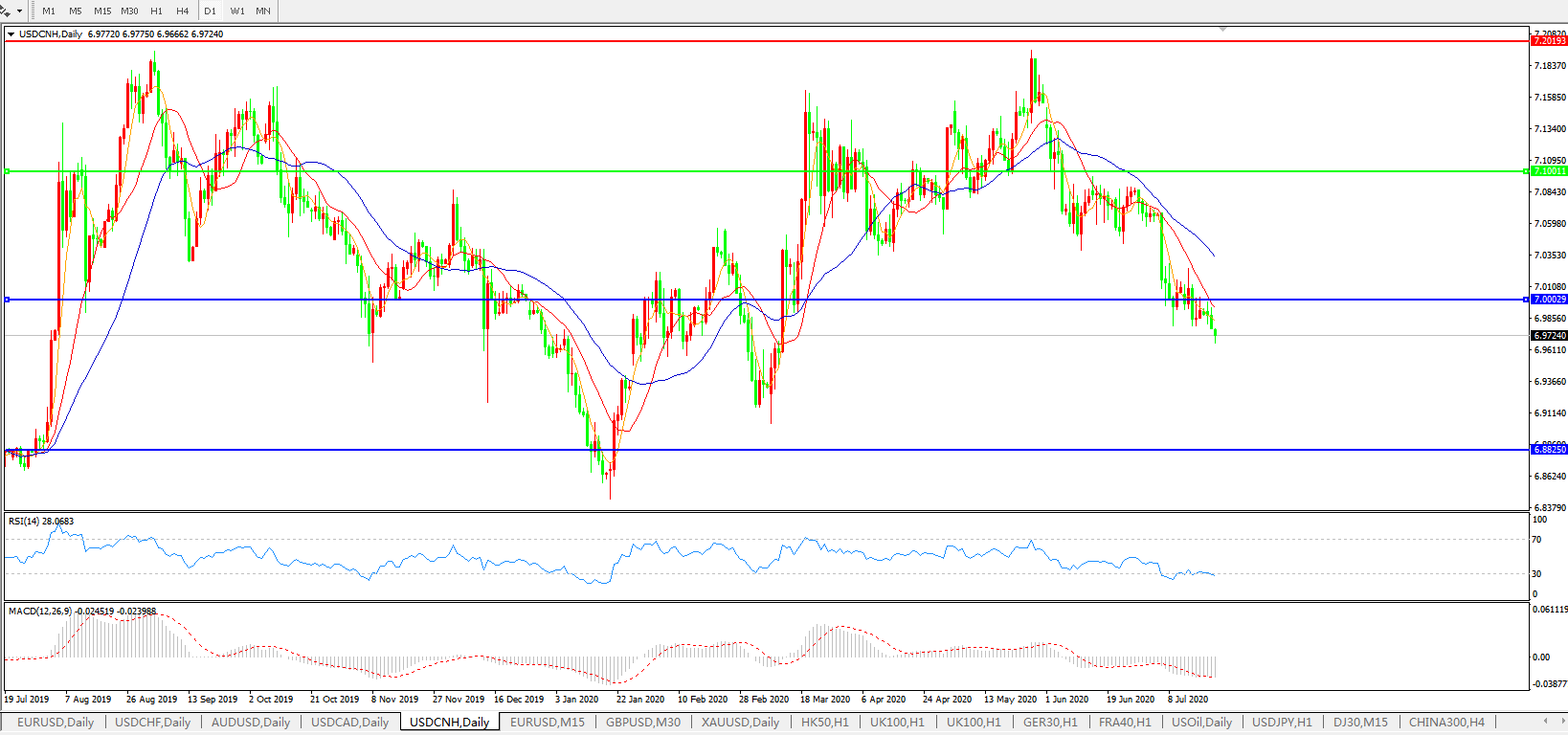 美元兑人民币USDCNH    日线图: