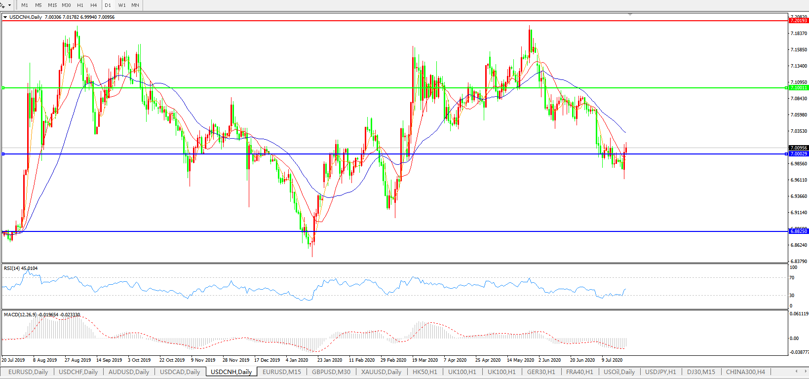 美元兑人民币USDCNH    日线图: