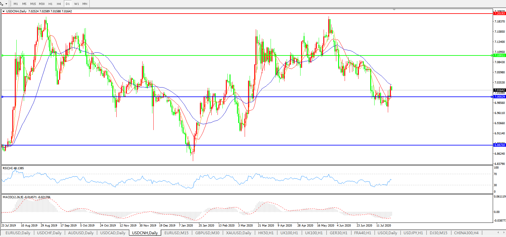 备选策略: 在7.1000之上,看涨,目标价位为7.2000,然后为7.3000。