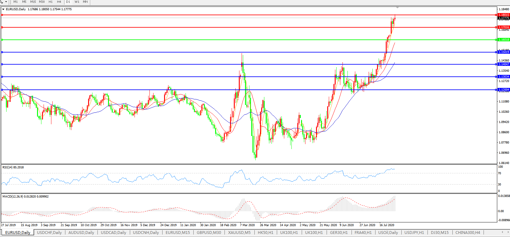 欧元兑美元EURUSD   日线图:
