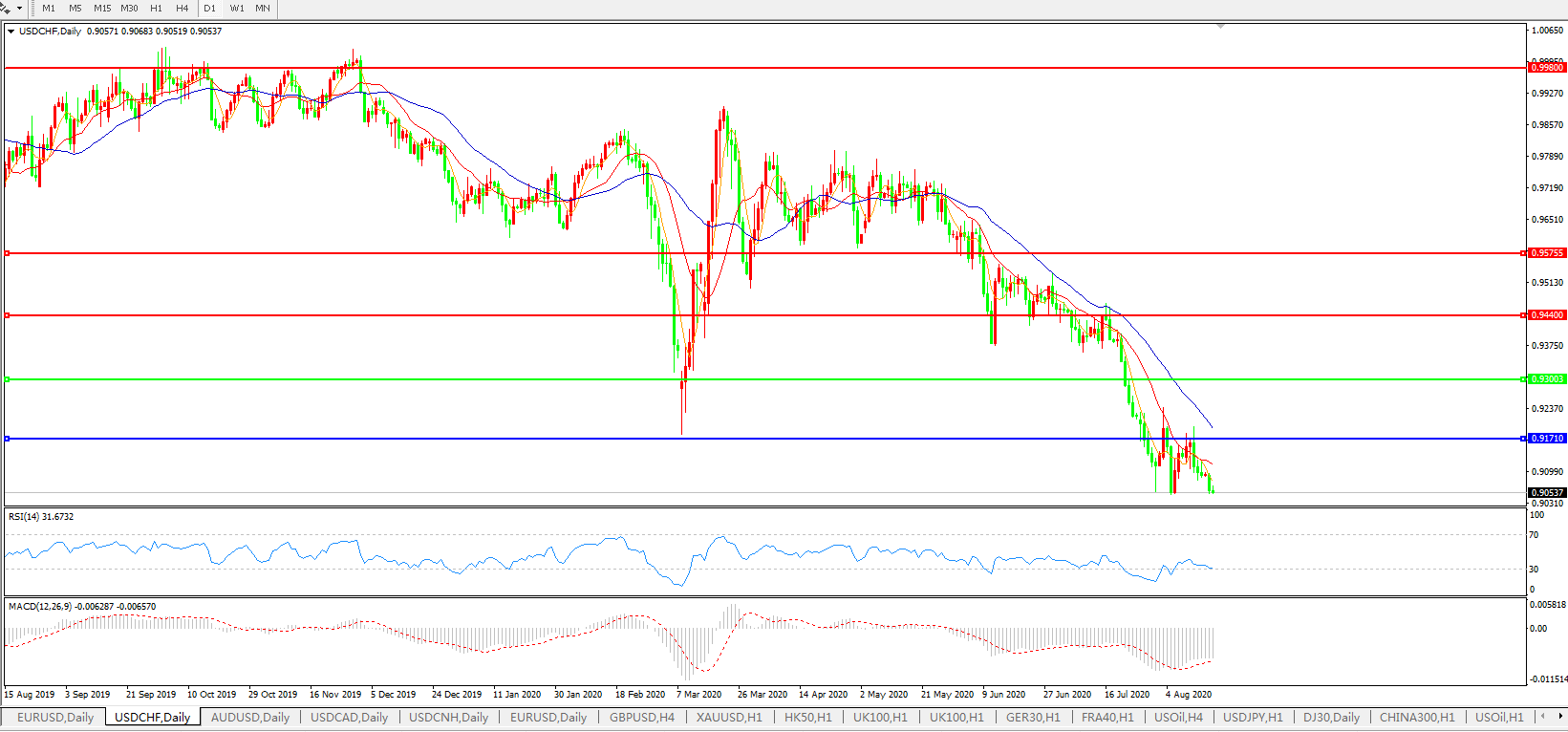 美元兑瑞郎USDCHF 日线图: