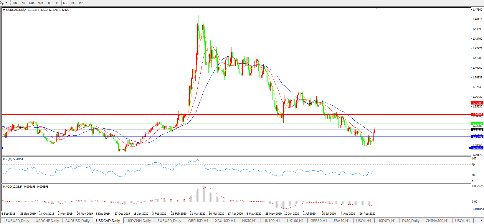 美元兑加元USDCAD 日线图: