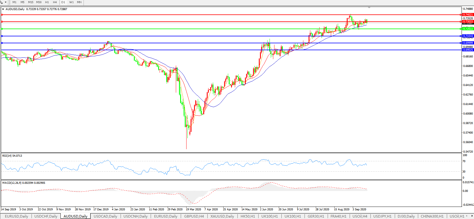 交易策略:0.7200上方看涨,目标0.7300、0.7400