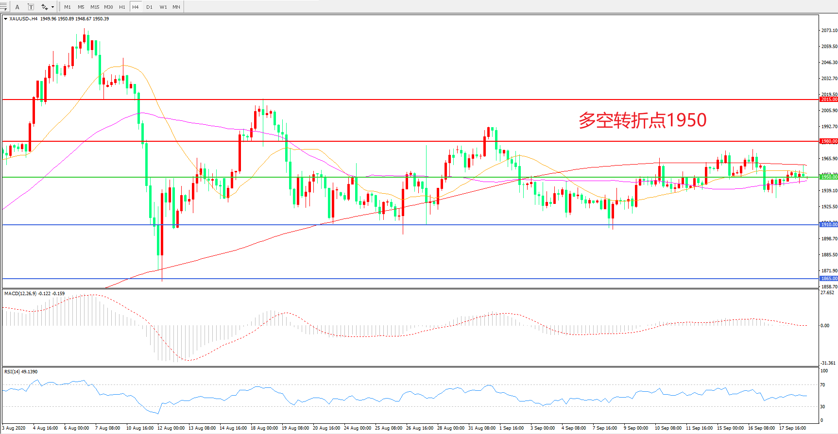 多空转折点:1950.00