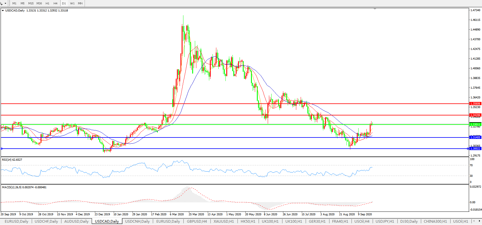 美元兑加元USDCAD 日线图: