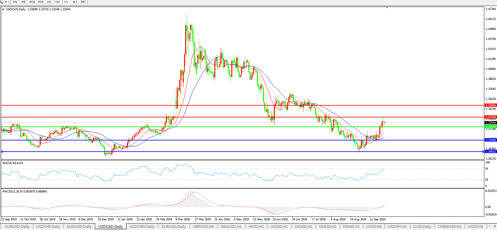 美元兑加元USDCAD    日线图: