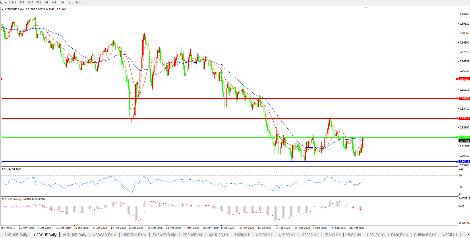 交易策略:0.9170上方看涨,目标0.9300、0.9440