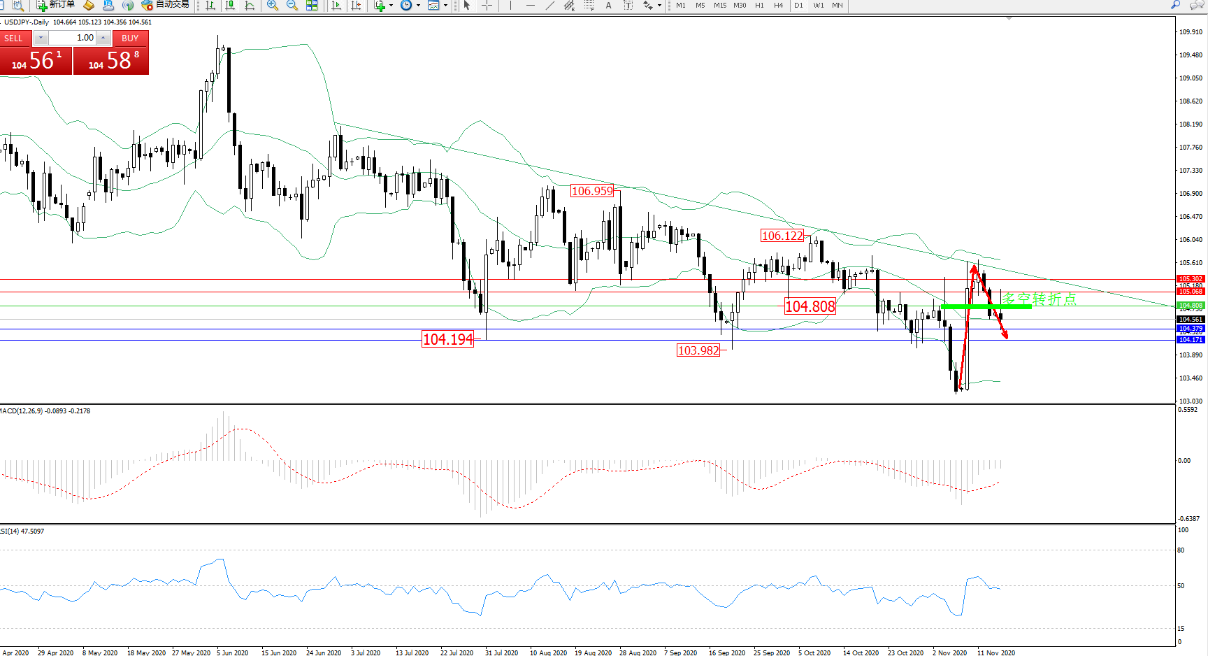 多空转折点:104.808