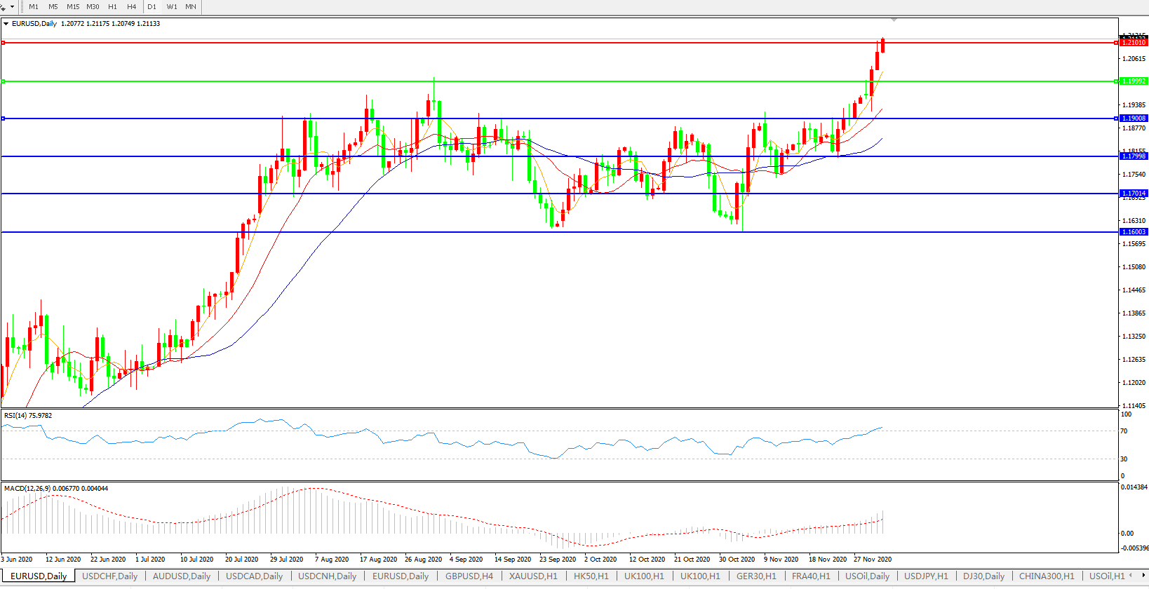 欧元兑美元EURUSD 日线图: